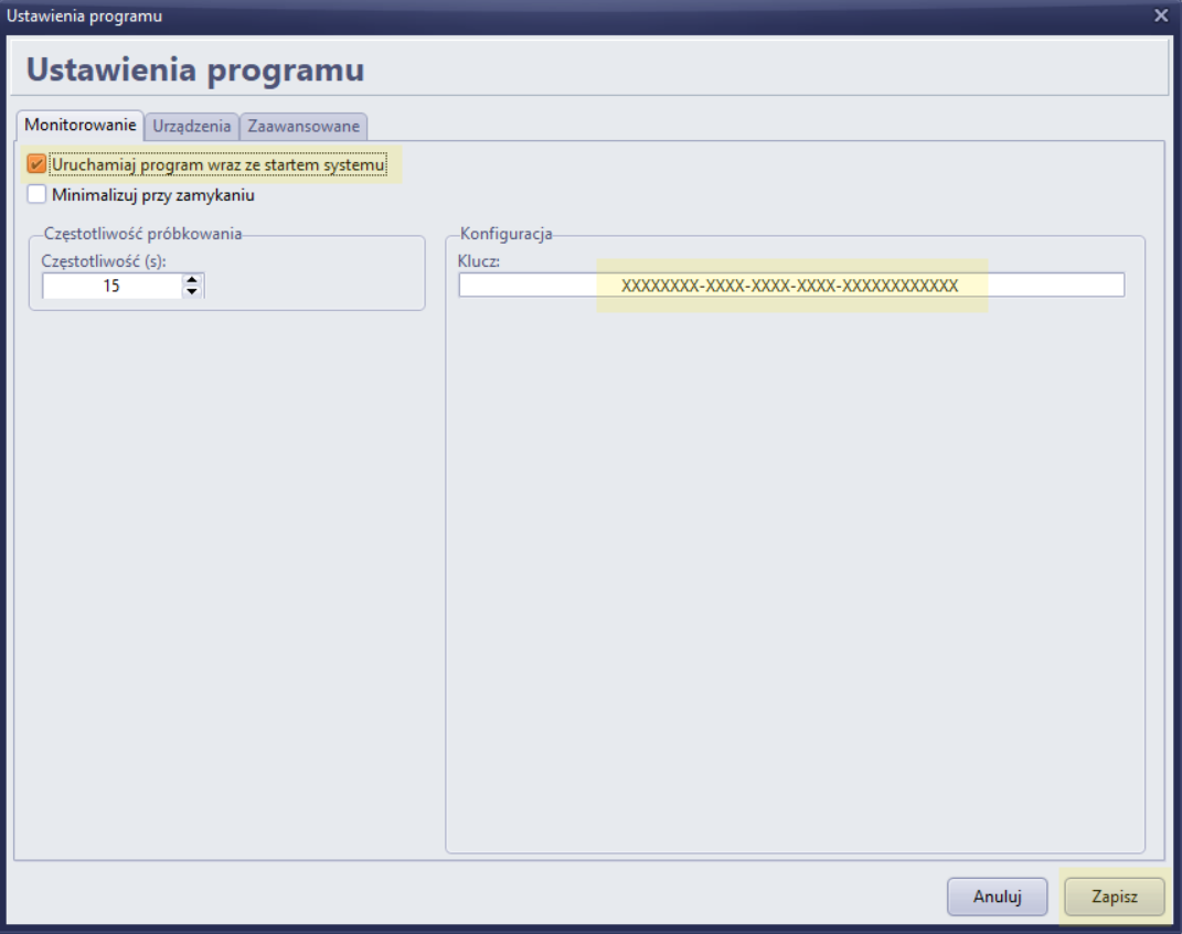 Upewnij się, że opcja Uruchamiaj program wraz ze startem systemu jest włączona, a następnie potwierdź zmiany przyciskiem Zapisz.