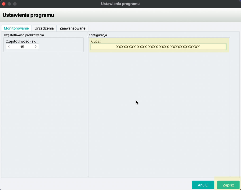 3. Wprowadź przesłany przez nas klucz studio w polu Klucz i potwierdź zmiany przyciskiem Zapisz.
